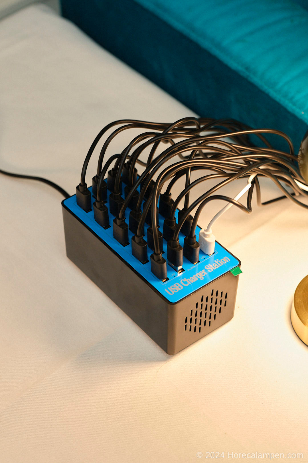 Horecalampen kunnen bedraad per 20 opgeladen worden, net als een telefoon. We hebben dus zelfs speciale opladers ontwikkeld zodat je ze gemakkelijk in groepen kunt opladen.